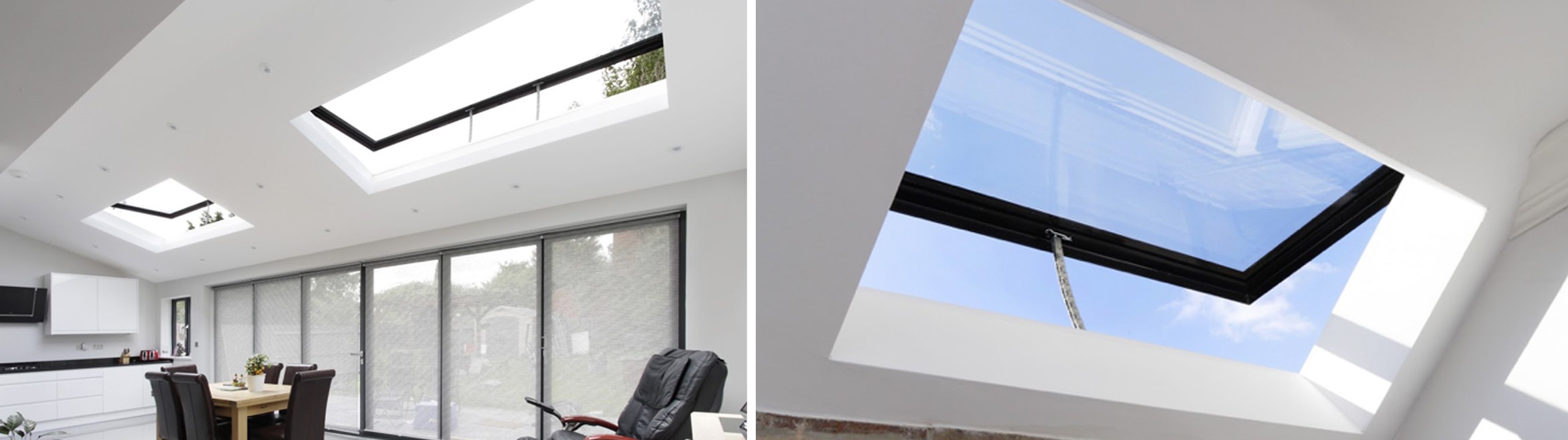 Our opening Rooflights come with 2 remote controls and rain sensors as standard and the range of rooflights means we can offer a fixed or opening light for pitches from 5 to 70 degrees.